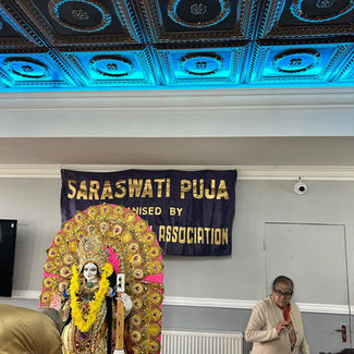 In 1973, members of the Bengali Hindu community in East London came together to celebrate Saraswati Puja at Stratford Town Hall. The event, organised with care and enthusiasm by Mr Hiranmoy Bhattacharya, was a great success and warmly received by the local community.